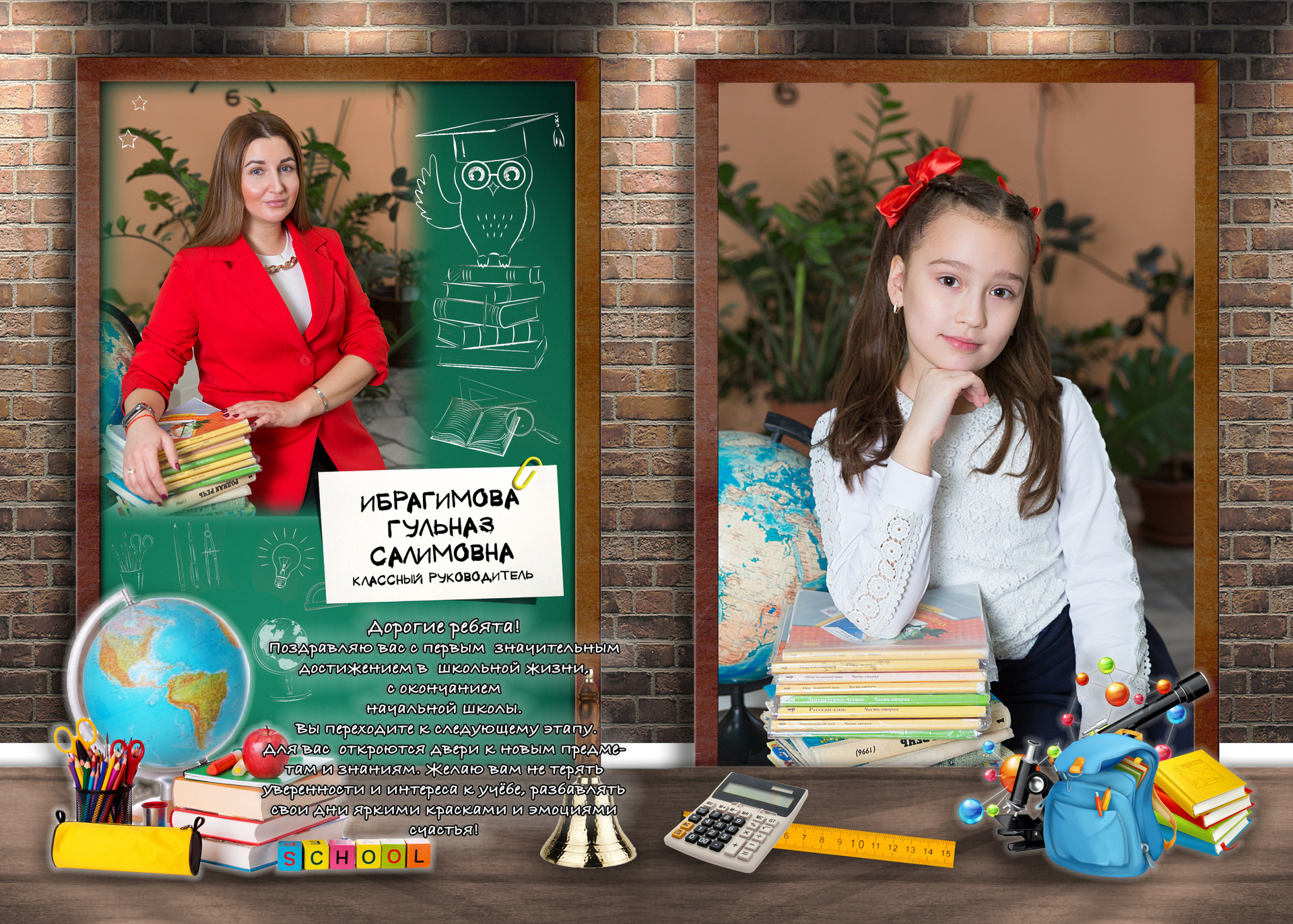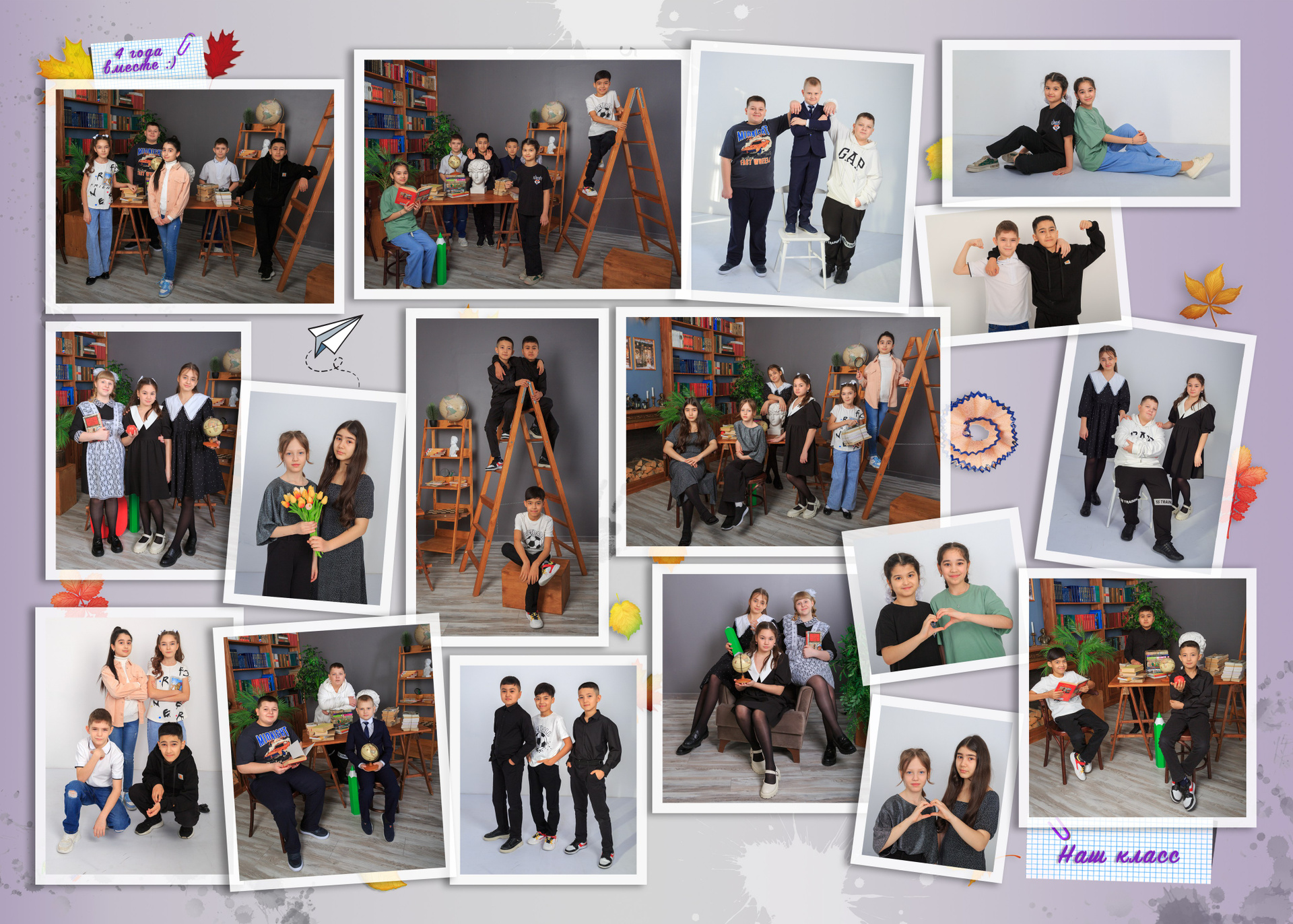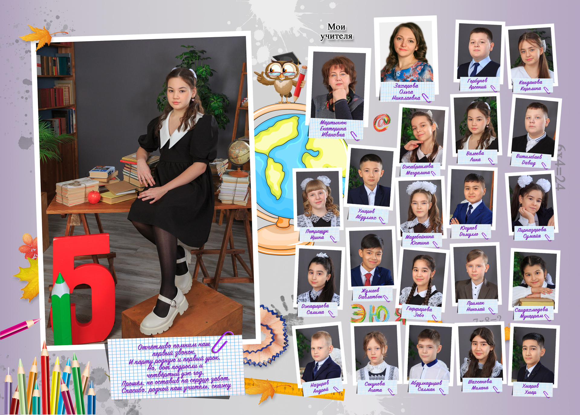 - Разворот с виньеткой и разворот с групповыми фото (одинаковые для всех)