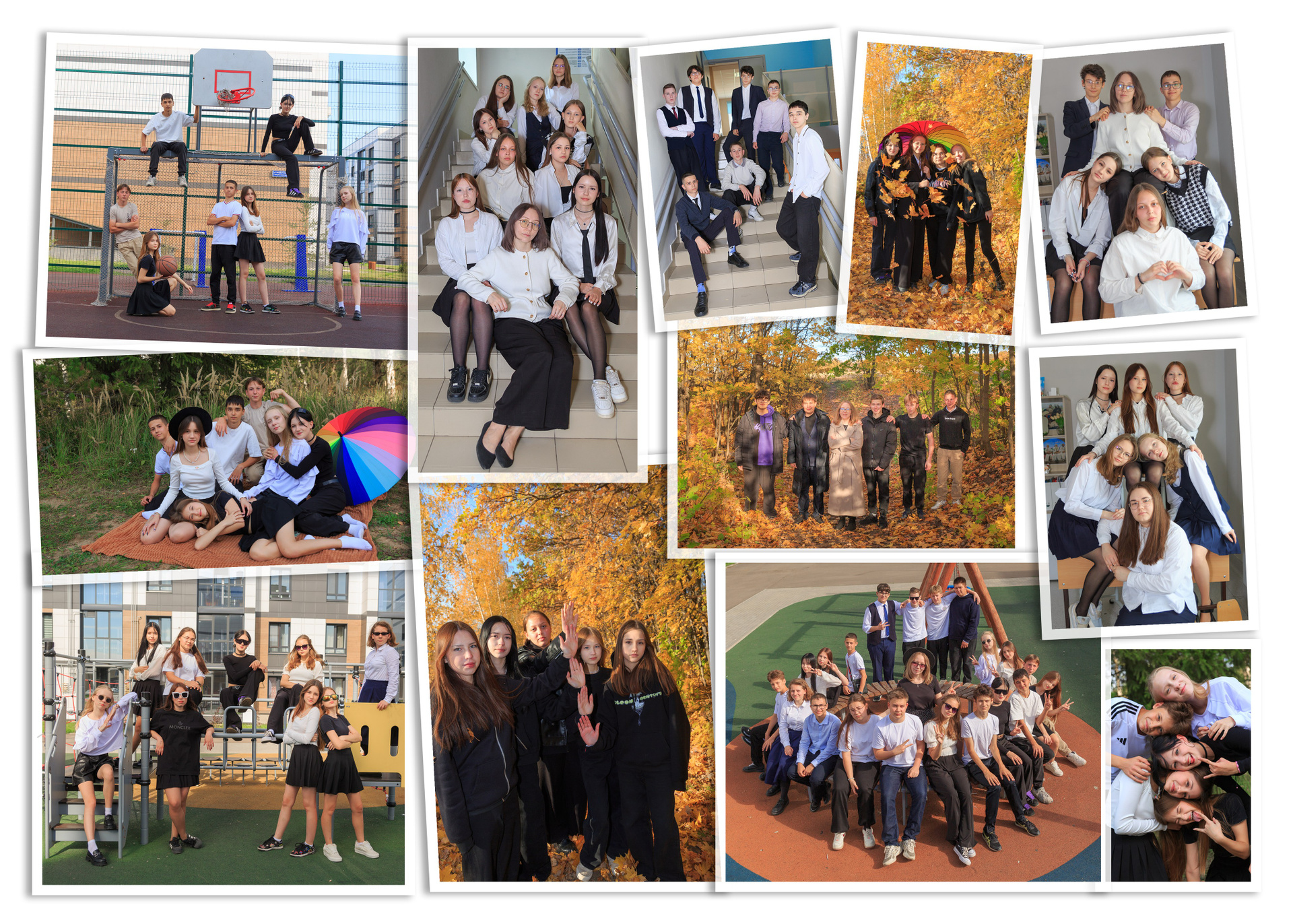 - Разворот с виньеткой и разворот с групповыми фото (одинаковые для всех)
